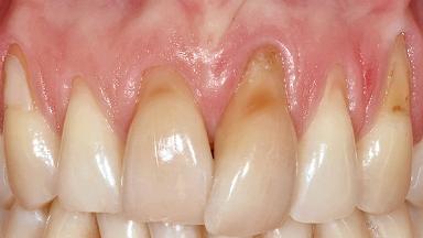 This case illustrates use of a modified ‘tunnel’ technique, which has been shown to be highly effective in root coverage procedures. The tunnel technique is used to achieve soft-tissue augmentation across the anterior area, including the planned implant site, using collagen matrix as grafting material. The patient is a 47-year-old woman with high esthetic expectations. Her main concern was the appearance of the anterior teeth and their “elongation”.