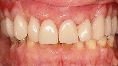 A 90-year-old, essentially healthy woman requested assistance following what she determined was the loss of a dental restoration from a maxillary anterior tooth. She also complained of pain associated with tooth 11. The patient was assessed as relatively fit and healthy. She took medications for mild hypertension and to prevent angina attacks (atenolol and diltiazem). She had a form of arthritic joint degeneration affecting several joints; especially in her hands and fingers. When required she used an NSAID (meloxicam) for pain management. She reported living alone in a care facility that allows for independent living, with domestic support when and if necessary and primary medical triage when required.