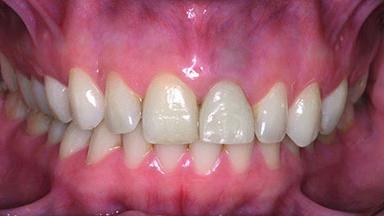 A 28-year-old patient presented at her general dentist’s office and complained about the appearance of her tooth 21. The patient had a history of trauma to this tooth. Endodontic treatment had been performed in the past and a crown placed on the tooth. A procedure to replace the old crown was performed by her dentist; however, a perforation on the middle third of the root occurred, and extraction of tooth 21 was suggested. Upon clinical and radiographic examination of the patient, who had been referred to us, replacement of tooth 21 by a dental implant appeared to be indicated.