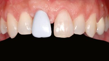 Staged bone augmentation of the alveolar ridge is indicated whenever a proposed implant site is deficient and will not support implant placement with simultaneous grafting. This is particularly true of healed sites presenting with facial flattening of the ridge. Since primary stability cannot possibly be achieved in this situation, it is recommended to use a staged approach with guided bone regeneration (GBR) for correct three-dimensional placement of the implant. In the anterior maxilla, staged GBR procedures are conducted not only to provide adequate bone volume for implant placement but also to restore a proper and stable contour of the orofacial ridge for improved long-term esthetics. A case is presented that demonstrates the technique for single-tooth replacement utilizing a staged approach with a particulate grafting material. A 50-year-old man whose tooth 11 was missing presented for consultation to the Center for Implant Dentistry in January 2010.
