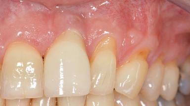 This case demonstrates that a connective-tissue graft in combination with a coronally positioned graft is an effective method of treating cases with peri-implant mucositis and an abutment-level sinus abscess. A 42-year-old man presented with a swelling adjacent to an implant crown at site 21. The swelling had been present for approximately three weeks and was constrained to the buccal and palatal gingival aspects of the implant. A discharge was noted on finger pressure, with localized gingival recession present on the mid- and distolabial aspects of the crown.