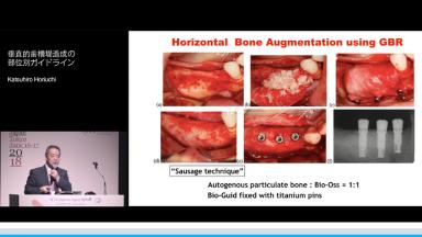 垂直的歯槽堤造成はインプラント外科において最も難易度の高い術式であると考えられている。これまで、自家骨 onlay graft、GBR、interpositional osteotomy、歯槽骨延長術が単独あるいは併用されてきたが、どの治療法が優れているかコンセンサスは得られていない。本講演では比較的侵襲性が低く汎用性が高いと考えられる吸収性・非吸収性メンブレンを用いた垂直的 GBRの技術的ポイントについて演者の症例を通して紹介している。