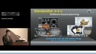 本講演では、最新デジタル技術による包括的インプラント治療と題して、デジタル化の現在、臨床応用、将来に関しての報告があった。治療前の診査・診断・治療計画、治療におけるガイデッドサージェリーやCAD/CAM、治療後の評価にもデジタル化が進んでおり、インプラント治療におけてなくてならない技術である。
