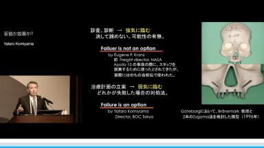 傾斜埋入されたフィクスチャーは、単独歯欠損修復では力学的に弱いが、複数支台の連結修復では各方向からの力に対する抵抗力は高くなる。 講演の最後には、温故知新(進・真・伸・慎・止)という言葉を軸に、歯科医師としてあるべき姿について語られた。