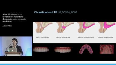 Cette présentation met en valeur l’importance de l’étude prothétique pré implantaire, de la discussion avec le patient de son besoin, de son projet prothétique et de la prise de sa DV. Le positionnement des incisives centrales maxillaires permettant de déterminer de façon pertinente le choix prothétique adapté au patient : bridge avec ou sans fausse gencive, ou overdenture sur locator ou piliers télescopiques.