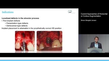 Horizontal or lateral ridge augmentation is defined as any bone augmentation procedure of the alveolar ridge in the horizontal dimension. It can be performed using a block graft, particulate grafts, or guided bone regeneration (GBR) procedures. A subgroup of horizontal augmentation is contour augmentation, in which the augmentation is performed simultaneously with implant placement in the esthetic zone to ensure long-term favorable esthetics and function. The presenter clearly demonstrates the indications for horizontal ridge augmentation, followed by the choice of surgical techniques and biomaterials that assist in achieving high predictability and low complication rates. The lecture concludes with long-term results and clinical recommendations.