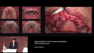 This lecture describes the treatment approach using a digital workflow for fixed implant rehabilitation of edentulous jaws. Treatment sequence, implant number and distribution, and the implant-prosthetic design are all thoroughly discussed. The speaker presents a detailed approach to full-arch rehabilitation using the digital workflow, which includes immediate loading with fixed screw-retained provisional prostheses during the healing phase. Other techniques presented include use of transitional implants and segmentation of full-arch prostheses. Evidence is presented on digital versus conventional implant impressions and the anterior-posterior distribution of implants in relation to survival.