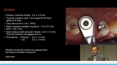 Cette présentation revient sur les différentes techniques d’augmentation sinusienne, en développant en particulier celle des augmentations par voie crestale (ostéotomes).