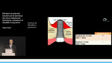 La réhabilitation implantaire du maxillaire postérieur fait face à deux difficultés : une hauteur osseuse infra-sinusienne fréquemment diminuée ainsi qu’une faible densité osseuse. Dans un souci permanent de simplification des thérapeutiques chirurgicales l’utilisation de la technique des ostéotomes permettrait, selon Dr Nedir, de traiter un plus grand nombre de patient et ce de manière prédictible. Il détaille l’utilisation de cette technique dans sa pratique privée et au travers de différentes études cliniques réalisées avec un suivi allant jusqu’à 10 ans.