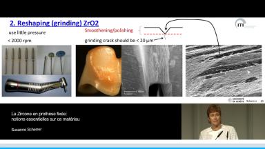 Cette présentation aborde les aspects biomécaniques du matériau Zircone dans ses applications en implantologie et en prothèse fixe. Une attention particulière est portée au rappel des propriétés intrinsèques de ce biomatériau au sein de la famille céramique. À travers une belle série d’images prises sous microscope à balayage électronique, le Dr Scherrer apporte des informations essentielles sur l’influence des différentes étapes de la fabrication (fabricant, laboratoire, usinage) et de la retouche (prothésiste, chirurgien-dentiste) dans le processus de développement de fractures. Les résultats des recherches in vitro dans le domaine amènent à un certain nombre de recommandations en clinique et au laboratoire qui sont détaillées dans le contenu de cette présentation.