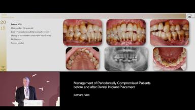 The lecture concludes with several clinical cases where the speaker covers the treatment planning process for periodontally compromised patients who require implant therapy, and their long-term management following placement.