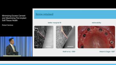 This lecture discusses the effect of excess cement on the peri-implant soft tissue. Discrepancies around the implant margin have also been shown to be detrimental to the peri-implant tissue. Excess retained cement results in significant inflammation and bone loss around restored dental implants. It can be difficult to clean the subgingival implant margin, and this may cause further damage to the titanium implant-abutment surface. There are various cementation techniques and restorative options available to reduce or eliminate excess cement. Options will be presented to minimize excess cement as well as to maximize peri-implant soft tissue health.