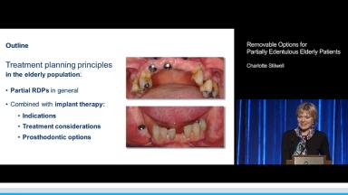 This lecture also gives an overview of implant-assisted partial RDPs, addressing support, retention, and esthetics in combination with tooth replacement, ridge preservation, and full-arch conversion. Unsplinted and splinted implant prosthodontic options for retention are presented. Finally, emphasis is placed on the importance of using implants as part of longer-term planning for the patient’s dentition.