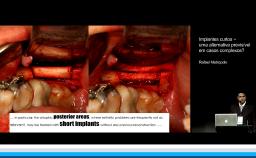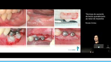 A apresentadora discute a importância dos tecidos moles e sua relação com saúde ou doença periimplantar. Discute-se os diferentes tipos de defeitos e técnicas cirúrgicas adequadas para aumento da quantidade de mucosa ceratinizada, visando melhor estabilidade tecidual ao longo dos anos. Por fim é apresentado o uso de um biomaterial para substituir tecido conjuntivo visando aumento de mucosa ceratinizada.