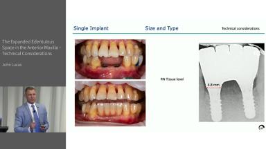 This lecture is accompanied by two more lectures covering the surgical considerations and the restorative considerations when looking at the expanded edentulous space in the anterior maxilla. The series highlights the necessity of communication and teamwork among the involved specialists to be successful with their treatment of the case.