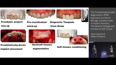 This lecture describes the concept of the Prosthetically Guided Regeneration (PGR) approach to manage complex cases in implant dentistry. This is the first of two parts of the presentation in which the guided bone regeneration techniques are amplified together with the use of diagnostic templates and pre-surgical implant planning to achieve remarkable final esthetic outcomes. M. Chiapasco and P. Casentini provide the classification of ridge defects and this first part discusses the management of class 1 and 2 defects with the PGR approach. The procedures are illustrated in detail with high-quality images and videos to demonstrate the PGR techniques by augmenting hard and soft tissue defects. The second part can be found here.