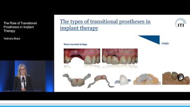 Transitional prostheses play an important role in replacing missing teeth during implant therapy, both before and after implant placement. This lecture is a concise review of the different types of transitional tooth replacements - removable and fixed - as well as a guide to the roles they play in diagnosis and soft tissue management. By outlining the indications, advantages and disadvantages of each, this presentation also serves as an aid to clinical decision-making.