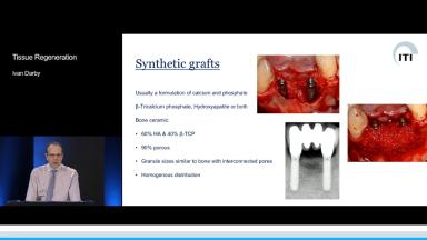 This lecture covers the biologic requirements and mechanisms for tissue regeneration, with a focus on the guided bone regeneration (GBR) procedure. It also provides concise and useful summaries of the socket healing process and the materials used in grafting – autogenous grafts, xenografts, and synthetic materials. The use of GBR in simultaneous and staged grafting procedures is also presented.