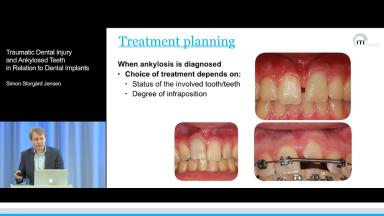 Traumatic injuries of teeth are quite prevalent in children and young adolescents. Ankylosis after traumatic injuries occurs more frequently following avulsion and intrusion, and it results from local destruction or resorption of the tooth structure and replacement of the adjacent alveolar bone. The ankylosed tooth becomes integrated with alveolar bone with consequent infraocclusion and a higher gingival margin, as the neighboring teeth erupt normally. This lecture discusses treatment planning for ankylosed teeth, which is always multidisciplinary and should start as early as possible, i.e., as soon as the ankylosis is diagnosed. Management of ankylosed permanent teeth depends on the status of the ankylosed tooth, the degree of infraposition, and expected continuous growth. The objective is to minimize vertical hard and soft tissue deficiencies. Different techniques such as decoronation, sandwich osteotomy, and socket preservation to preserve alveolar bone prior to implant placement are presented.